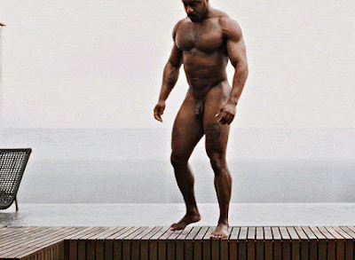 Given the size of his man-tool hanging between his legs, I'm certain the line is forming now for all those inviting him to "come inside and play!"